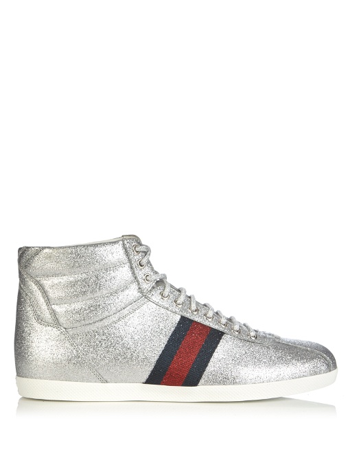 - Every day, actress Christina Milian prefers laconic Gucci Coda high-tops with branded red and green stripes. She wears them with blue skinny jeans and a beige jumper.