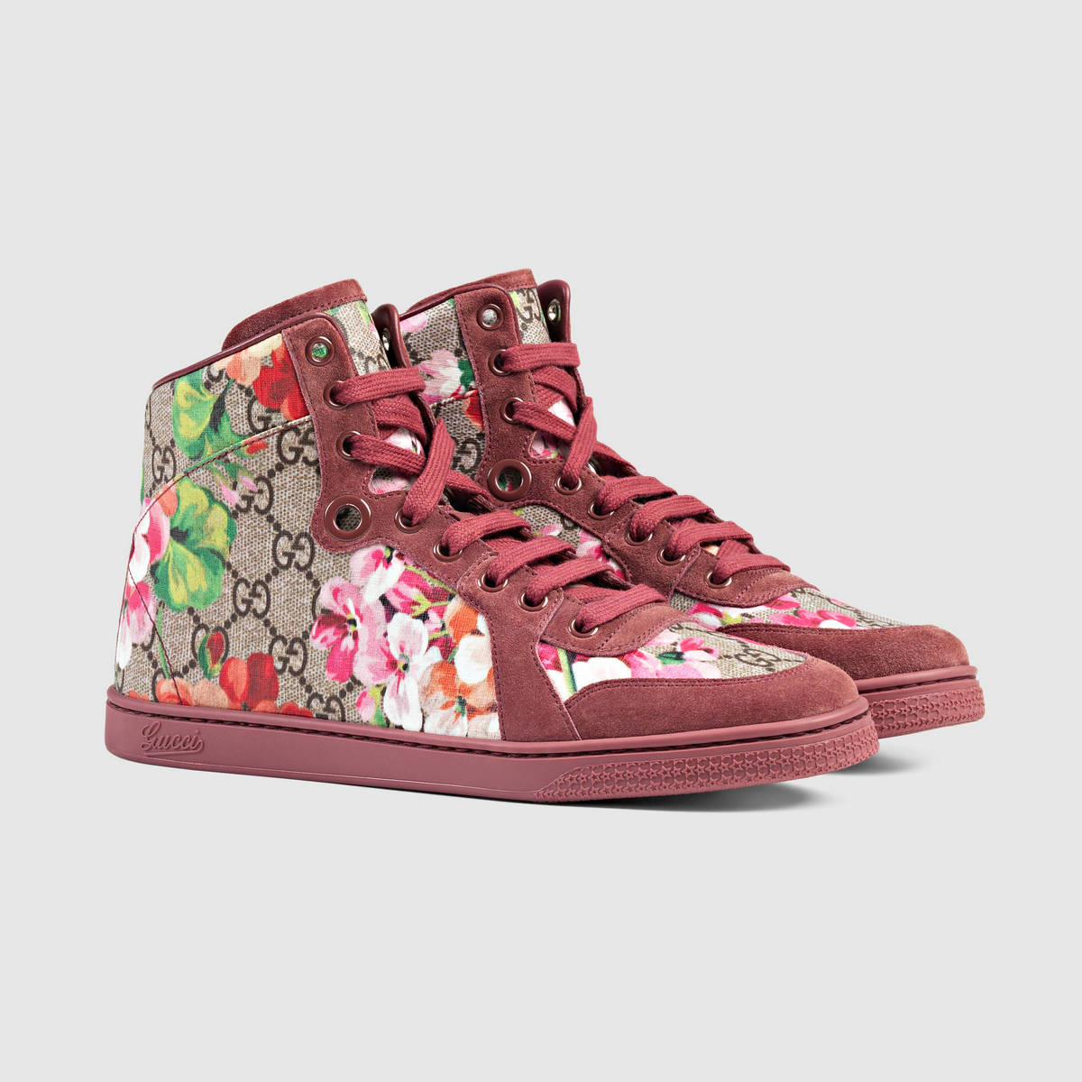 High-tops or high-top sneakers made from classic tapestry material. The latest collection is lavishly decorated with oriental prints depicting fruits, butterflies and hummingbirds.Some are trimmed with soft suede, matched to the color of the pattern.