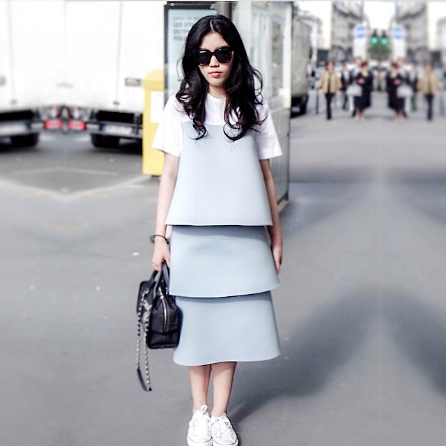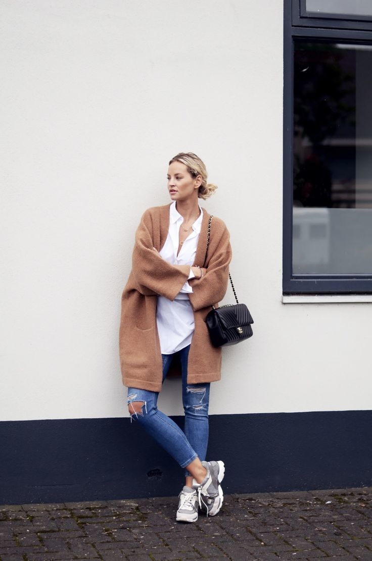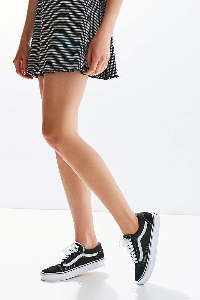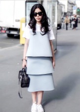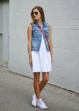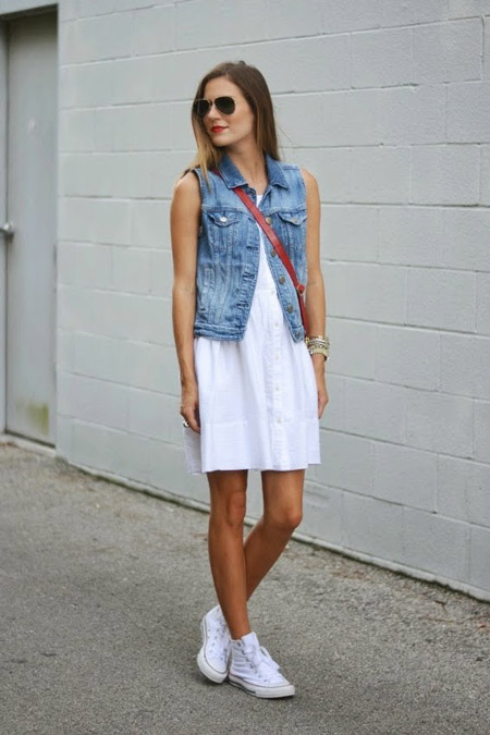 Sneakers in a tandem with dresses of a direct or fitted cut look romantically and effectively. The dress can be of different lengths - short or long. Often in combination with a dress, sneakers are worn on a bare foot.