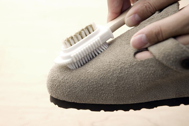 - Then you should take a special rubber brush and comb the nubuck pile.