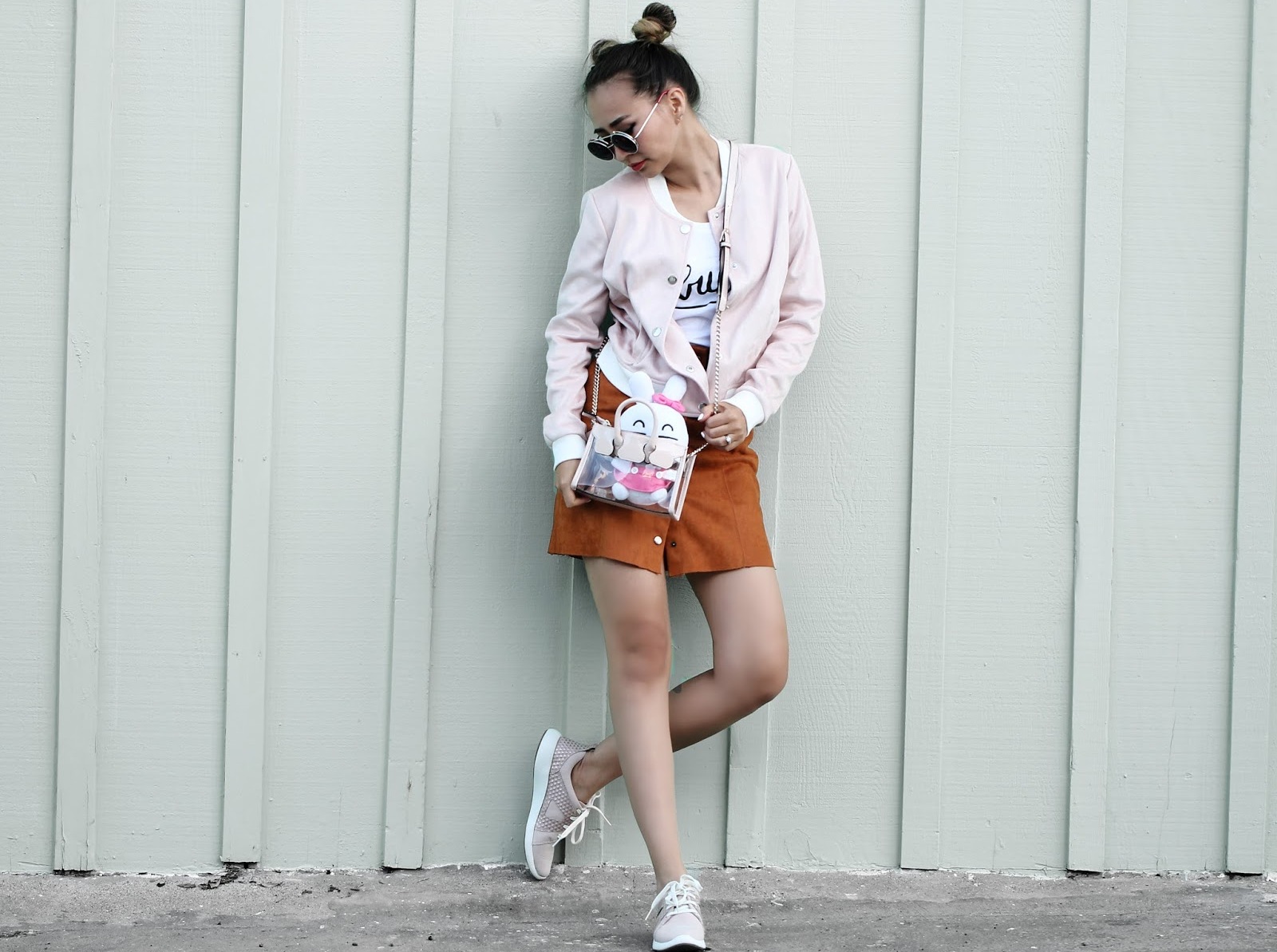 Girls can choose a model of sneakers from nubuck in bright colors or with an unusual design. Such shoes will be the main focus of a unique bow, so the clothes should be presented in soothing colors.