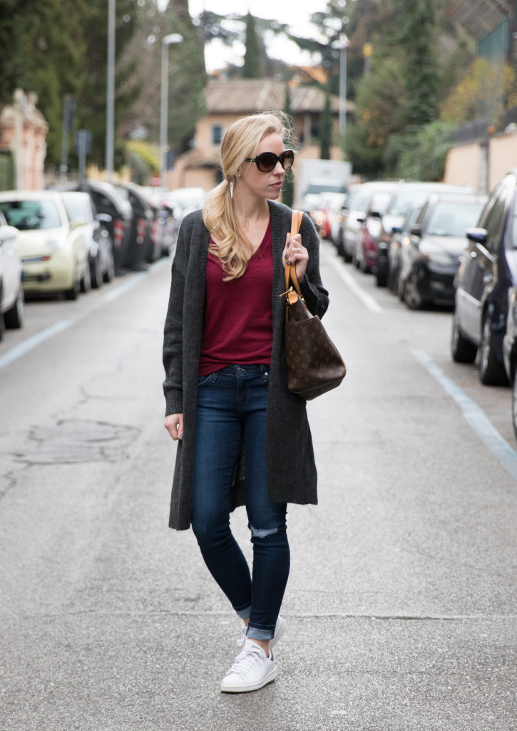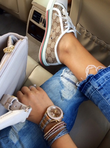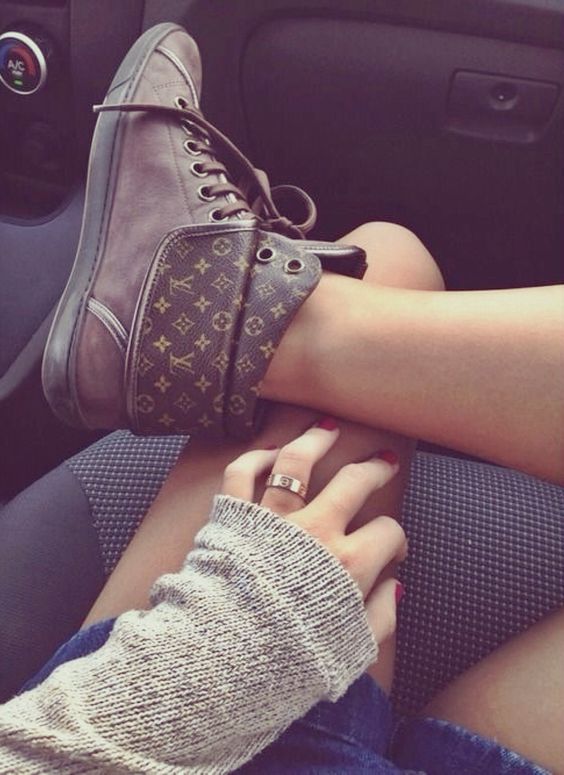 - Want to create an American-style atmospheric outdoor bow? Then the combination of Louis Vuitton sneakers with short denim shorts and a brutal leather jacket, preferably with metal inserts, will please you!
