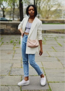 Sneakers, denim jeans and bright T-shirts with original prints will create a chic summer look.