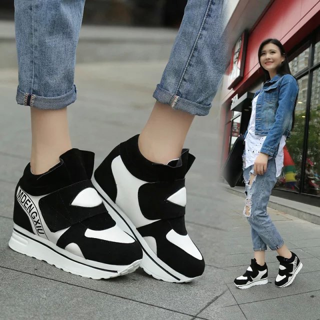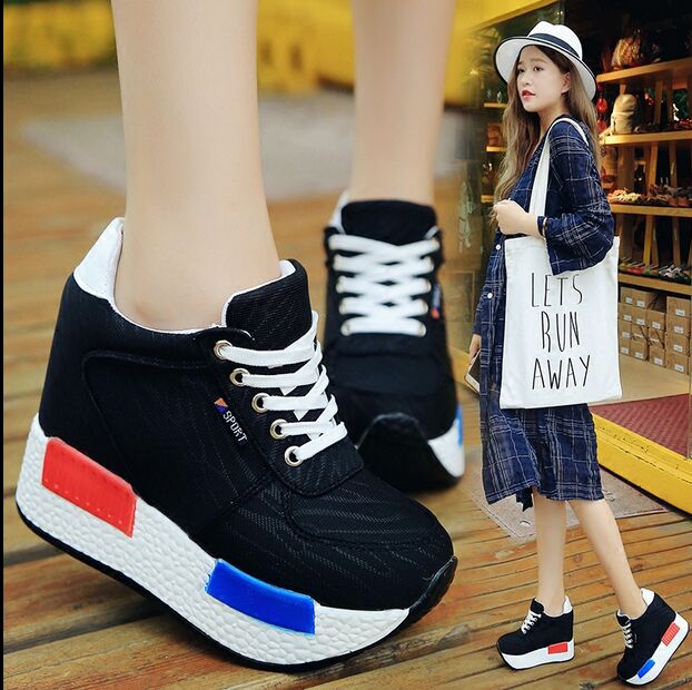 Many girls, dissatisfied with their height, tend to increase it visually, and at the same time give extra slimness to their legs. To perform this task are usually used shoes with heels. But are they comfortable in everyday life when you have to walk a lot? It is much more customary to wear sneakers, and if they are on a high sole, all the demands of the female heart will be satisfied.