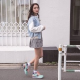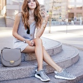 Summer sneakers look great with loose pants, breeches, leggings, shorts, the top is usually a cardigan, a light sweater, a windbreaker or a T-shirt.