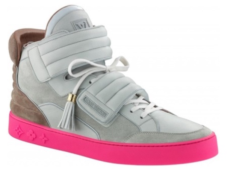 Many models of Louis Vuitton sneakers have a rather thick flat sole with a brand name. The sole can be a classic white color or, for example, a bright pink color. The leg is fixed with the help of lacing, and the presence of stickies is also characteristic of high models with a soft upper leg.