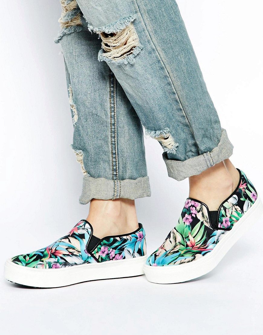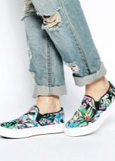Sneakers, the appearance and the block of which have the same type of structure, often differ in design and variant of the material from which they are made. Products can be more restrained and monotonous, and may be youth, dazzling bright colors and unusual prints.