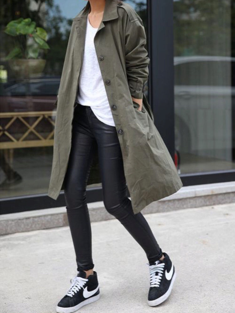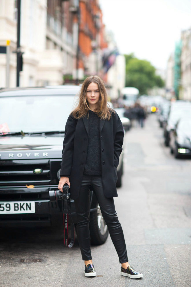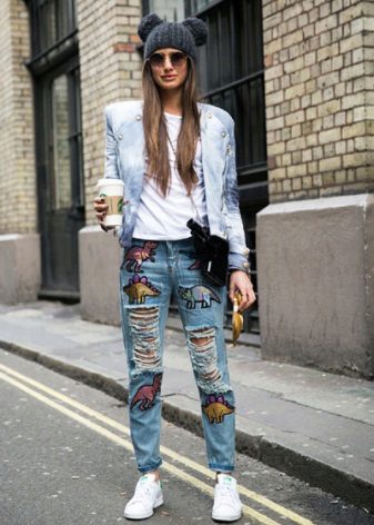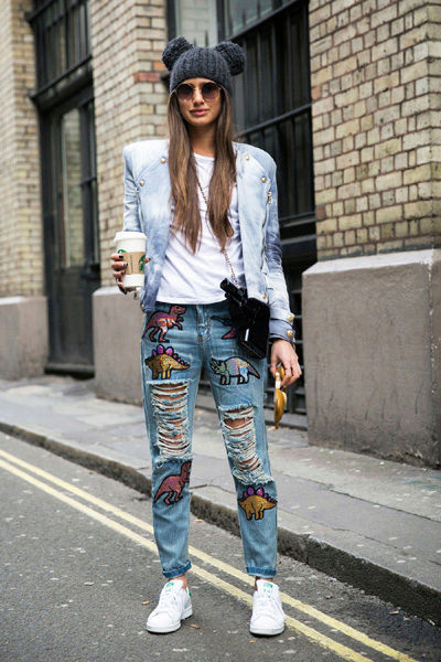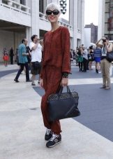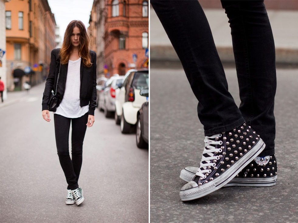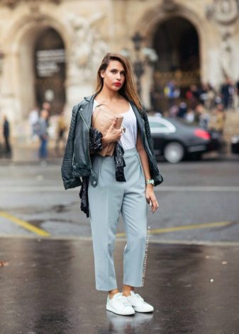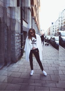 So that the image does not seem too dark and gloomy, you should dilute it with stylish white leather sneakers.