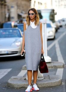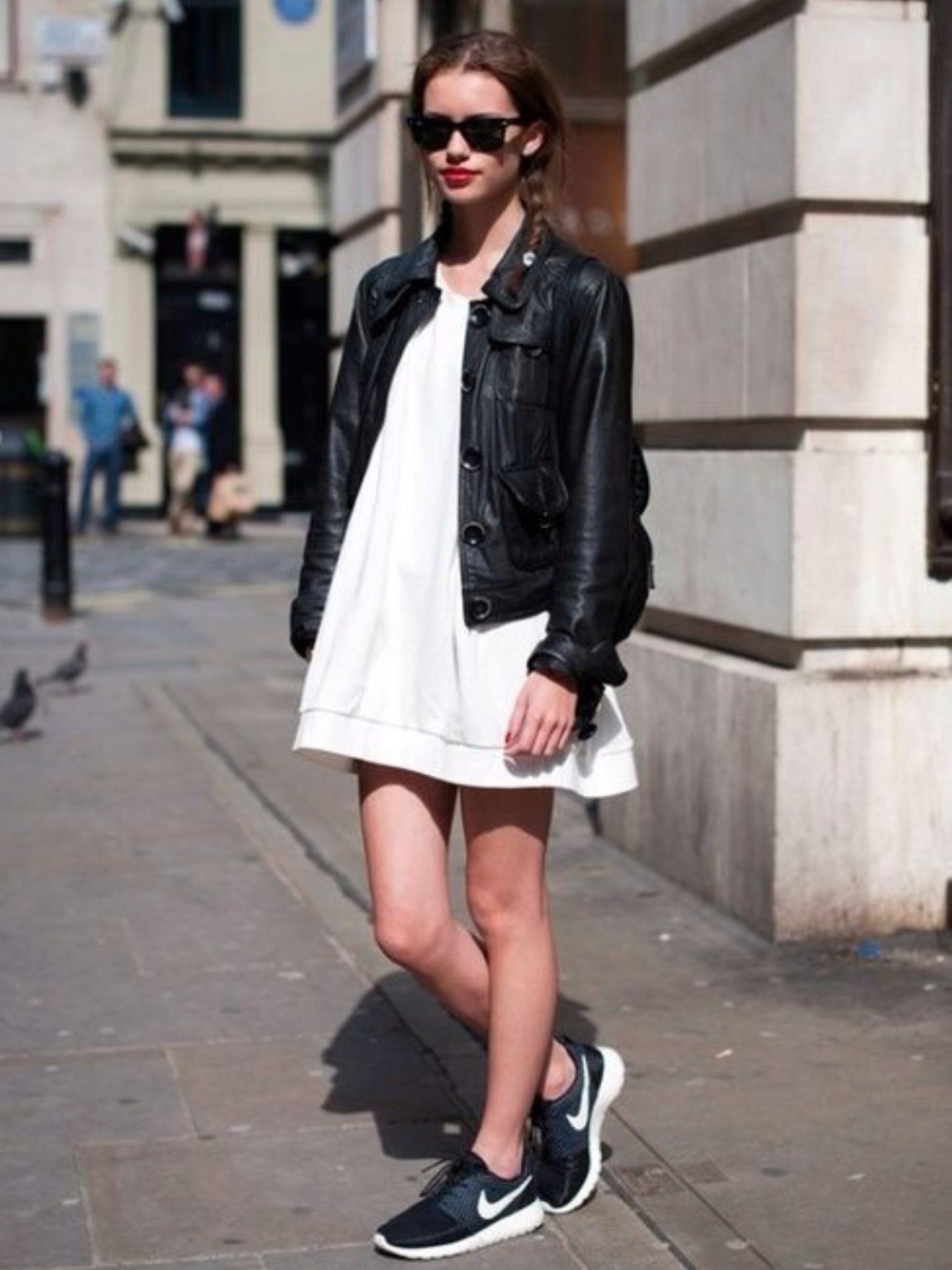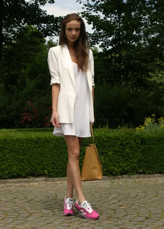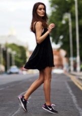 - Sports style does not always mean slovenliness and simplicity, it can be very feminine! So, for example, a stylish fitted dress with a free bottom to the knee and short sleeves will look very attractive with sneakers.
