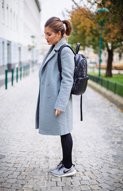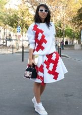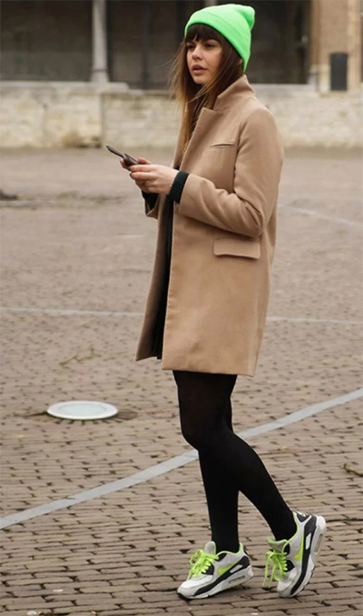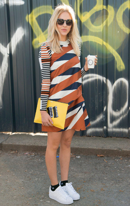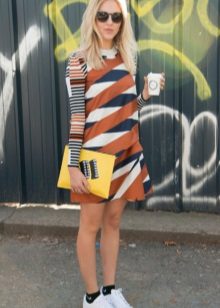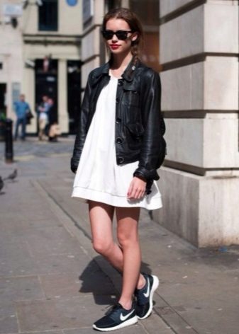 Wearing a skirt dress and combining it with sneakers in the cold season, tights will definitely be needed.