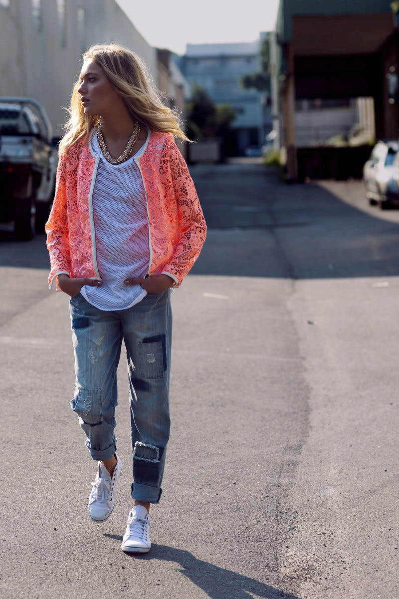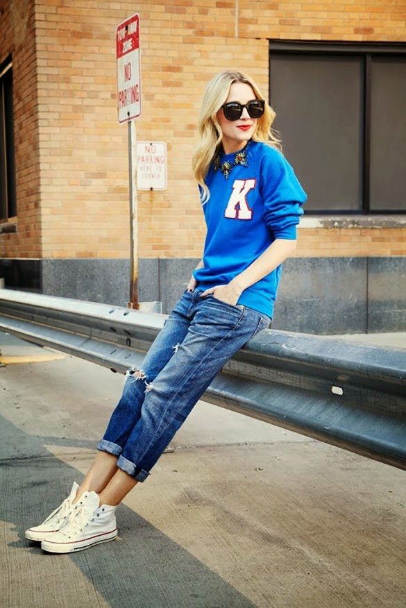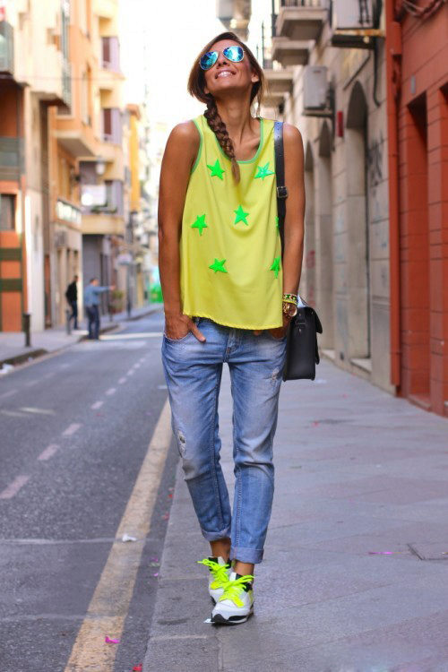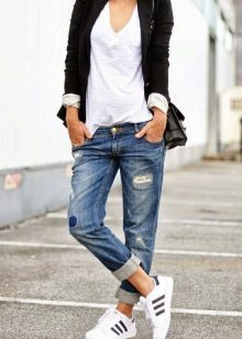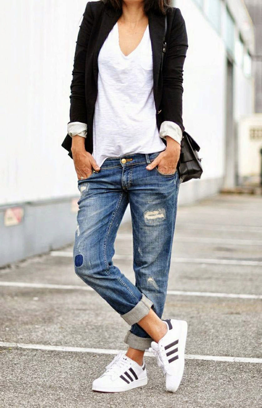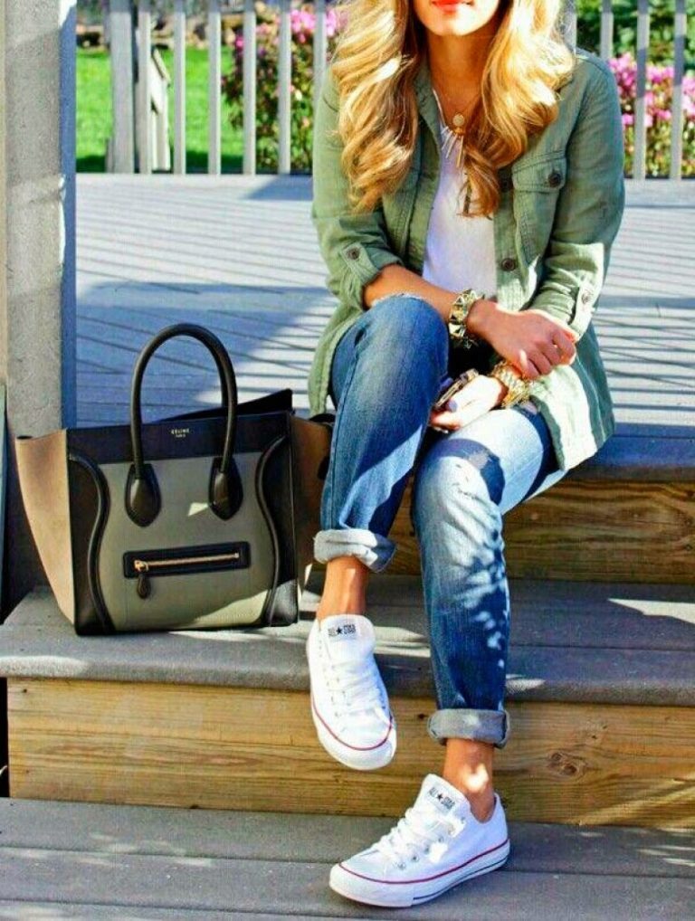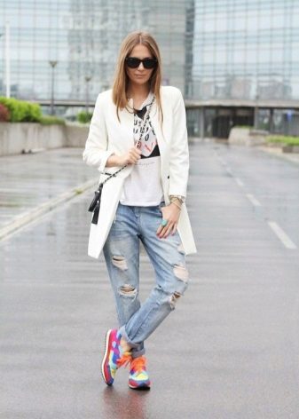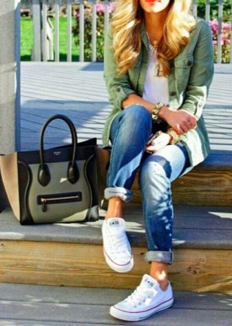 Casual sneakers look good with tight pants and jeans, complemented by various T-shirts and tops and stylish jackets. Mixing classic and sports style can look very interesting.