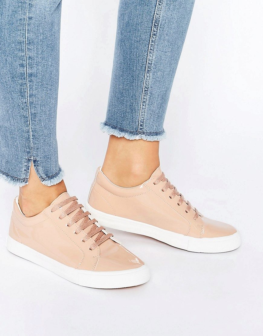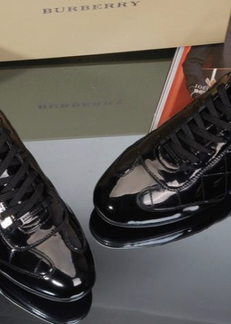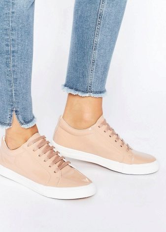 A model of patent leather looks very interesting. Naturally, such sneakers are categorically not suitable for sports, because heavy loads will lead to rapid damage to the product, but the model will become a smart everyday option.