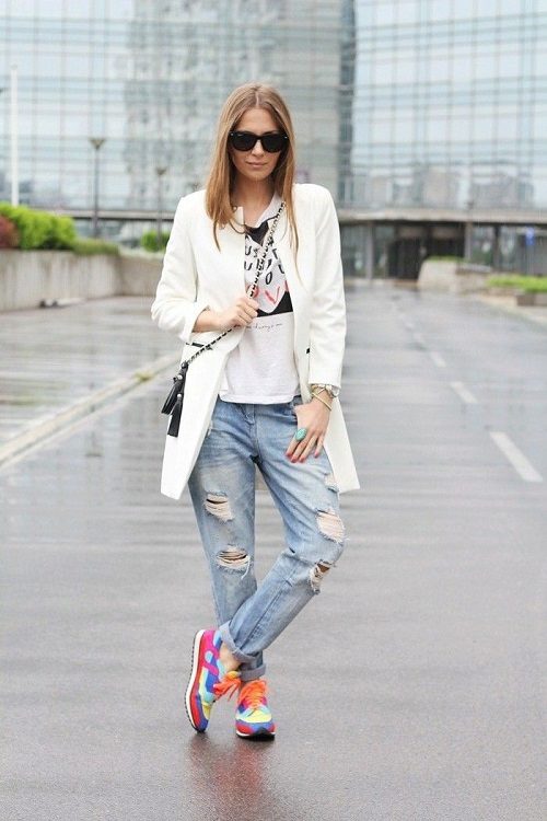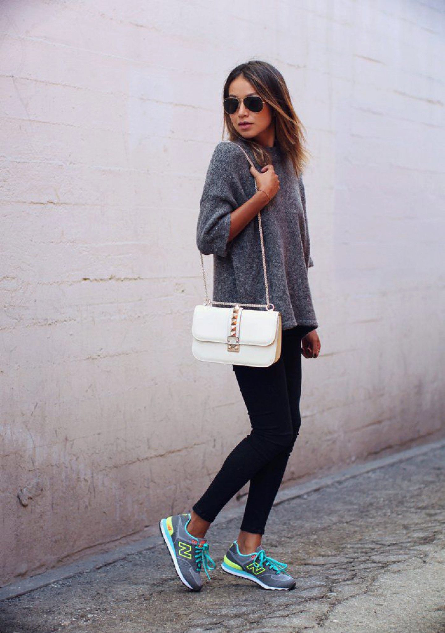 In addition, winter models of sneakers look quite good with down jackets, sheepskin coats and various down jackets of shorter models.For the fall, leather leather jackets and woolen coats are perfect, which, in combination with everyday models of sports shoes, will create an incredibly interesting look.