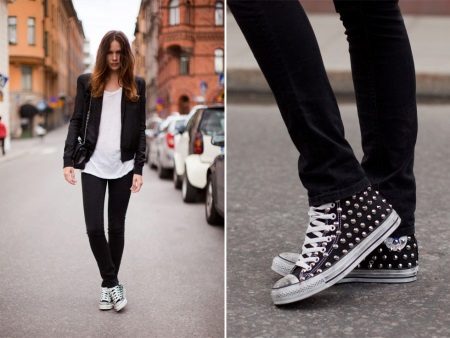 - Very stylish look sneakers with decorative studded elements. The product is in demand among supporters of the informal style, but lovers add "spice" to everyday life, too, will not remain indifferent.