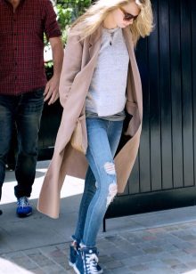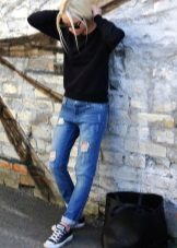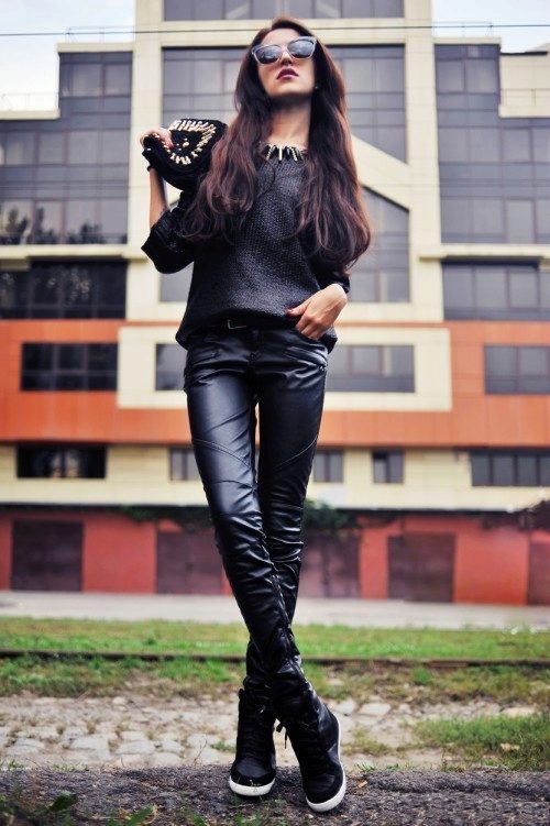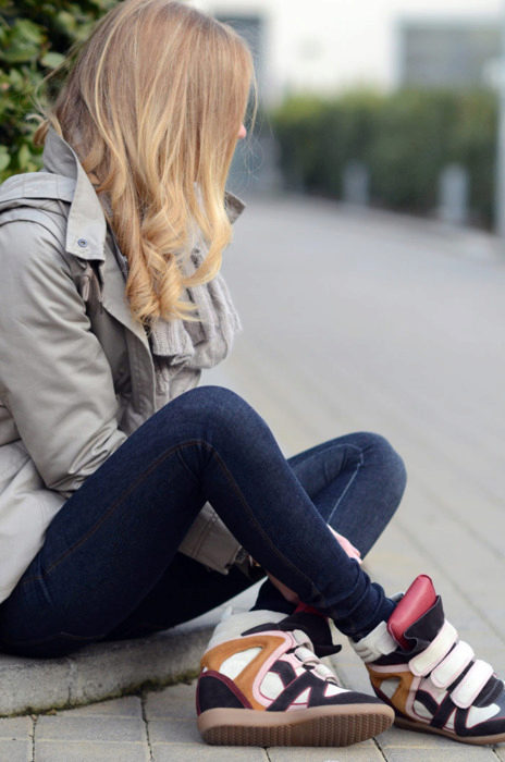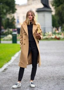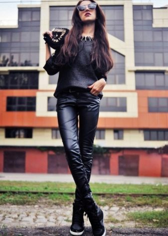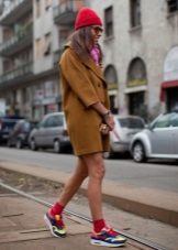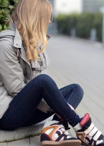 Best of all sneakers on heels look on slender and long legs. But you still have to balance the image of the volume riding in clothing. It would be a mistake to wear such sneakers (a la ankle boots with a wide heel) to ladies with low stature and wide ankles in order not to get a comical image.