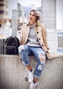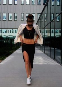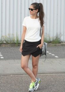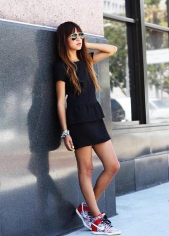 High model sneakers. These sneakers can often be seen on girls up to 30 years old in combination with frivolous skirts or tight-fitting trousers. As a successful combination, culottes or a pencil skirt are suitable for high top sneakers. The main thing is a wardrobe matched to the tone.