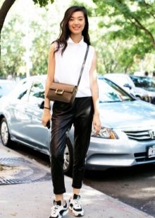 Fashionable sneakers in 2017 will make a perfect pair of leggings and short coats, straight trousers or skirts under a jacket, stylish overalls for summer or autumn. You can create a chic image with sneakers, if you add more elements in the style of the business casual. When creating a fashionable image is also worth beat colors. For example, colored pants will be perfectly combined with monochrome sneakers and vice versa.