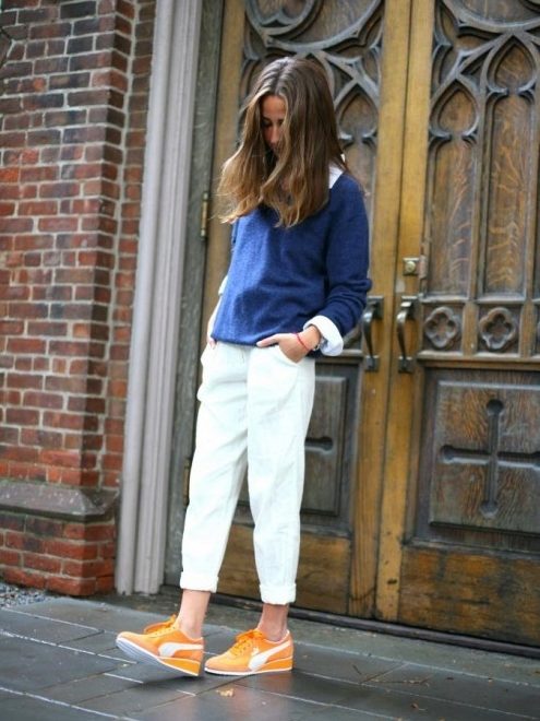 Since sports and romantic images always follow you, it is not difficult to choose sneakers and clothes. The main thing is that it looks aesthetically and moderately.