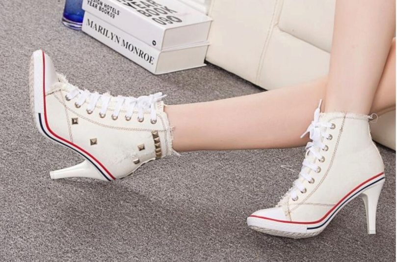 Different models sneakers on wedges. These sneakers are so popular that they will hold the leading position for more than one season. Sometimes these sneakers are called ankle boots styled as sports shoes. It is easy to build a business image with them.