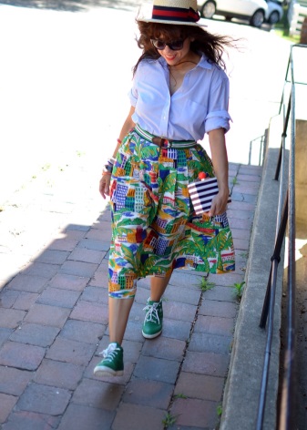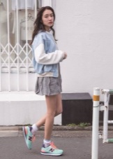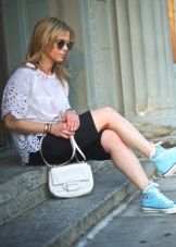 Sneakers of such a shade will perfectly fit into many summer looks with skirts and dresses of different models and lengths. It is necessary to exclude only the length of the maxi, since it is categorically not combined with sports shoes.