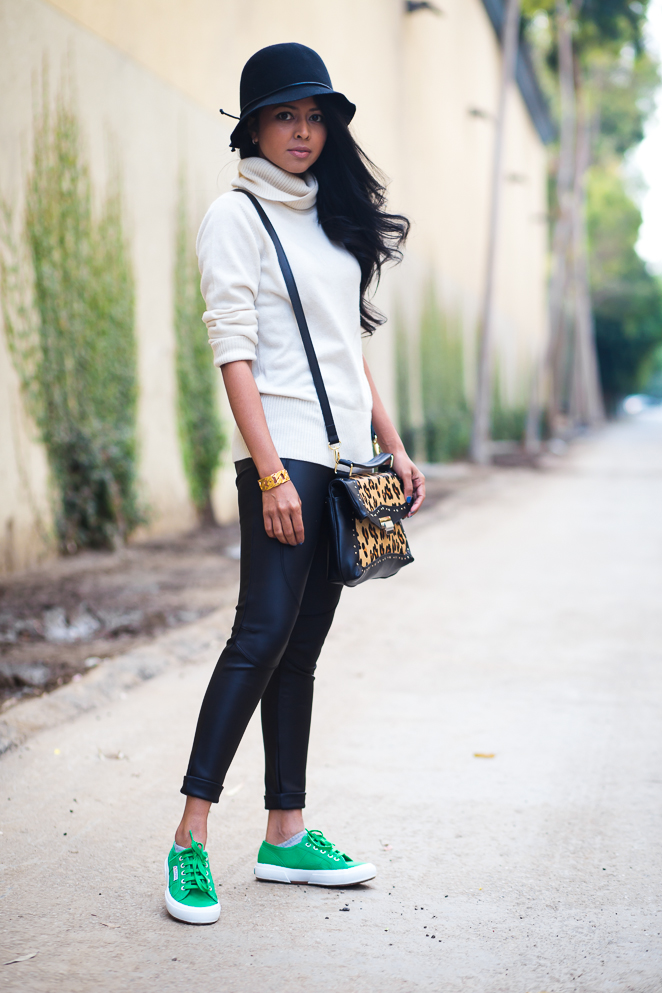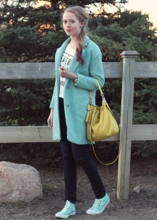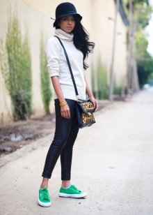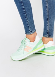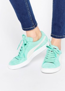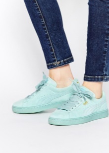 Previously, sneakers belonged exclusively to the sporty style and only recently fashionable stylists began to allow the combination of this type of footwear with clothing in different styles. For example, mint sneakers will help to dilute the classic image, consisting of skinny pants and a jacket.