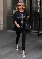 Athletic shoes combined with a small amount of clothing. Basically, it's sporty or free style. Sneakers on the platform allow you to push the boundaries of compatibility of clothing of different styles with this type of footwear. And while you can look at one hundred percent, not at the expense of comfort and practicality.