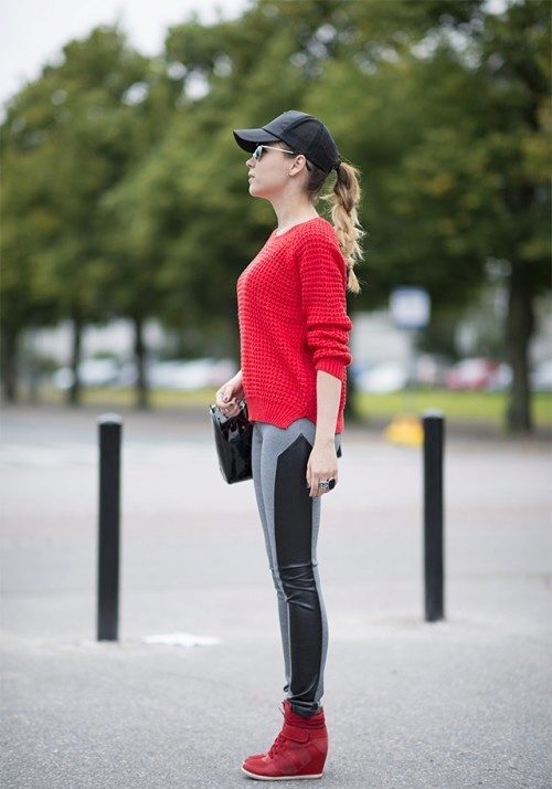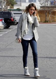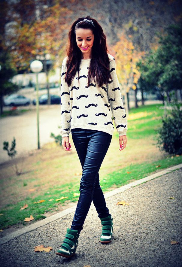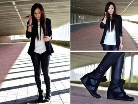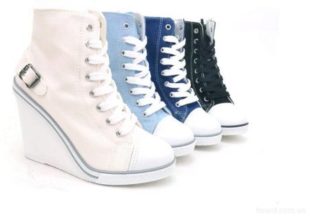 Sneakers on the platform can be combined with many things: sweatshirts, jeans, T-shirts, leggings, short jackets, jackets, tunics, leggings, dresses and denim skirts.