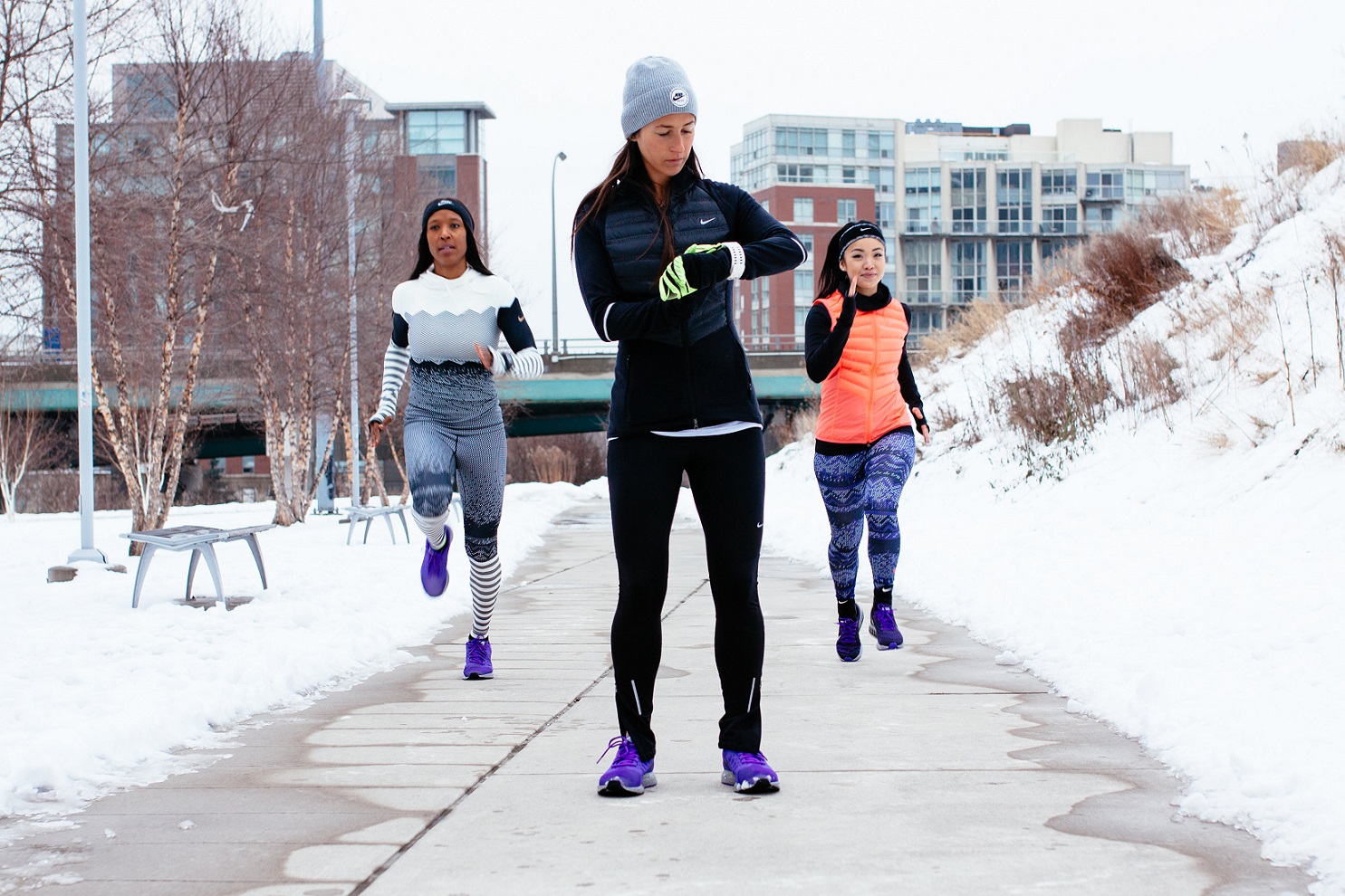 Nike - shoes are waterproof, but it is better to run in it in the snow than in the rain, otherwise the foot will get wet. They also have footwear for night runs with reflectors. (free 5.0 shield)
