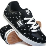 Of course, except for models made in bright and unusual colors, Printed sneakers are also popular. Stripes, zigzags, company or sports team logos, peas, flowers, etc. can be used as prints.