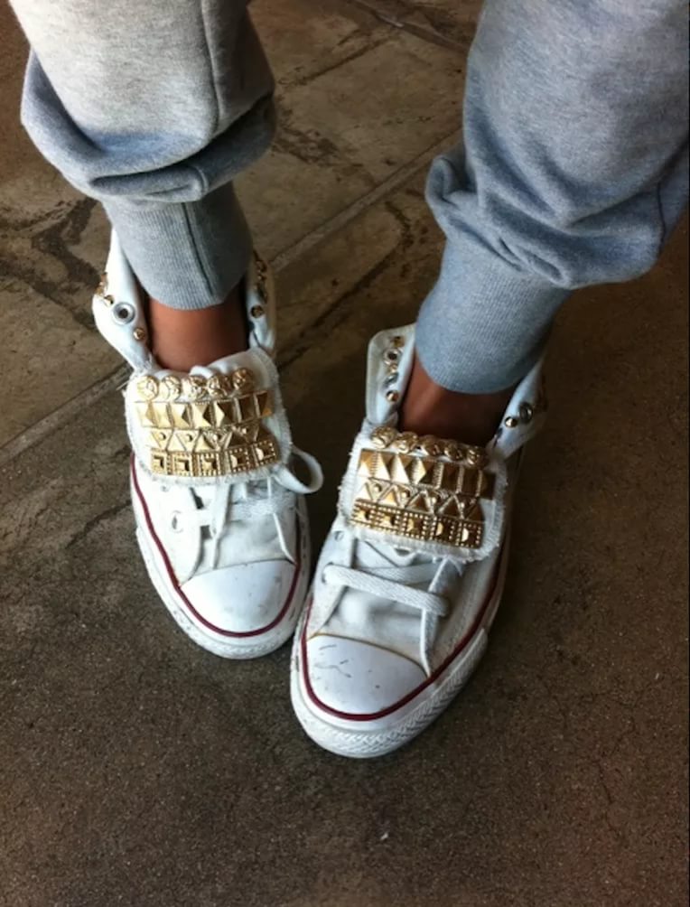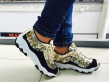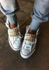 - Multi-colored sneakers decorated with sequins. This decorative material has been very popular for several years and is one of the most used. Including, for decoration of sneakers. Sequins can be matched to the tone of the shoe or have a contrasting color.