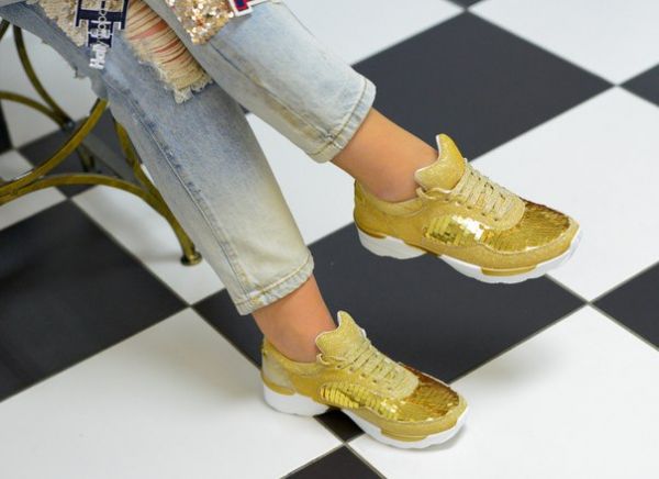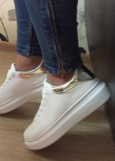 - Sneakers with gold and silver details. Variations on this topic can be very different! Sneakers, entirely made of golden or silver leather, colored models, complemented by shiny elements (laces, outsole, decor), etc.