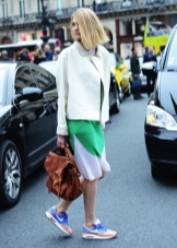More elegant models of multi-colored sneakers will be very appropriately combined with dresses, skirts and sundresses. Complement the image of a denim jacket or knitted cardigan, jacket, jacket or a knitted vest.