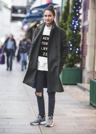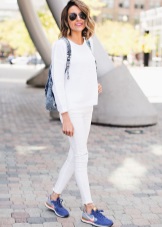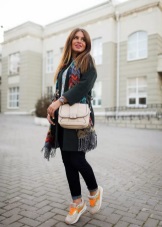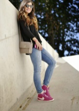 The choice of a suitable clothing ensemble depends largely on the design of the sneakers themselves. If the model is purely sports, then it will be best to look with jeans, sweatpants, leggings, breeches, etc. As the top, you can pick up a cute T-shirt or a neutral color top, a light shirt or a color tunic.