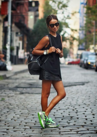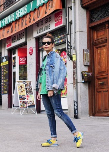Sneakers juicy, rich colors - an integral part of the youth image. They can be worn to jeans, shorts, light summer trousers, colorful dresses, colorful skirts, sundresses, leggings, etc. If the sneakers are monophonic, then the clothes can be printed, and if the sneakers are decorated with a pattern or ornament, then it is best to select monophonic clothes for them.