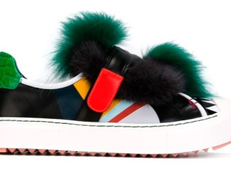 - Fur sneakers. Leather sneakers, trimmed with a bright furry, look great with jeans and a fur jacket. Stylish and bright!