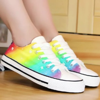 - "Rainbow" sneakers. Shoes, on which the whole rainbow spectrum shimmers - a great option for summer.