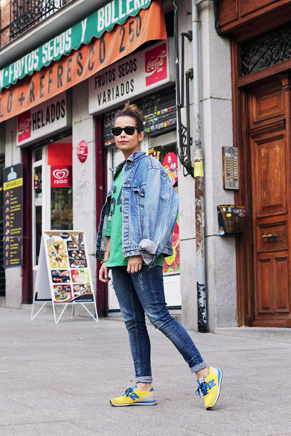 Sneakers can be matched to a specific tone or be a contrasting accent of the image.