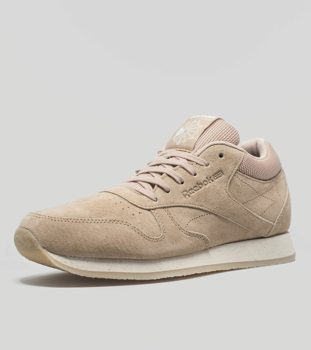 In addition to smooth leather, sometimes suede is chosen as the base material, for example, in Reebok Leather EXOTICS and Classic Leather Crepe.