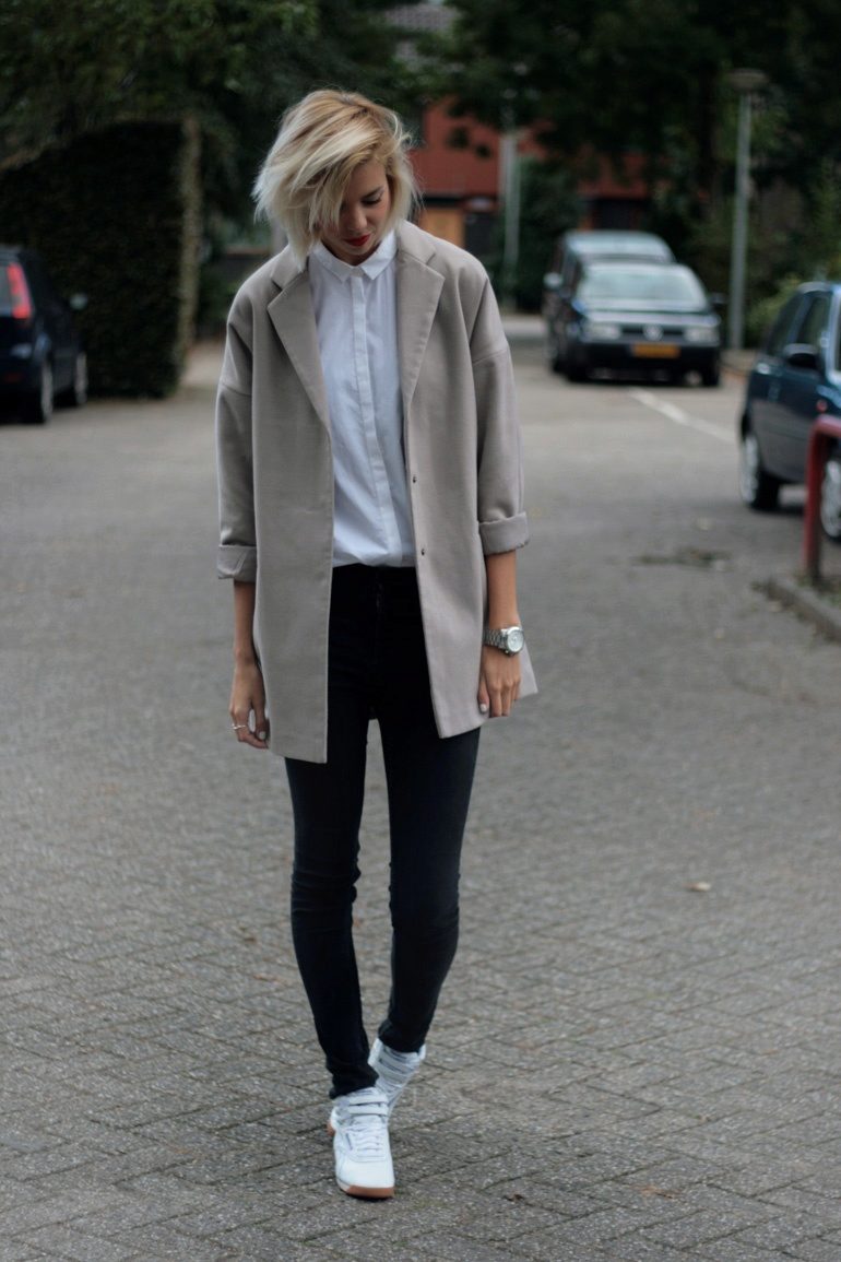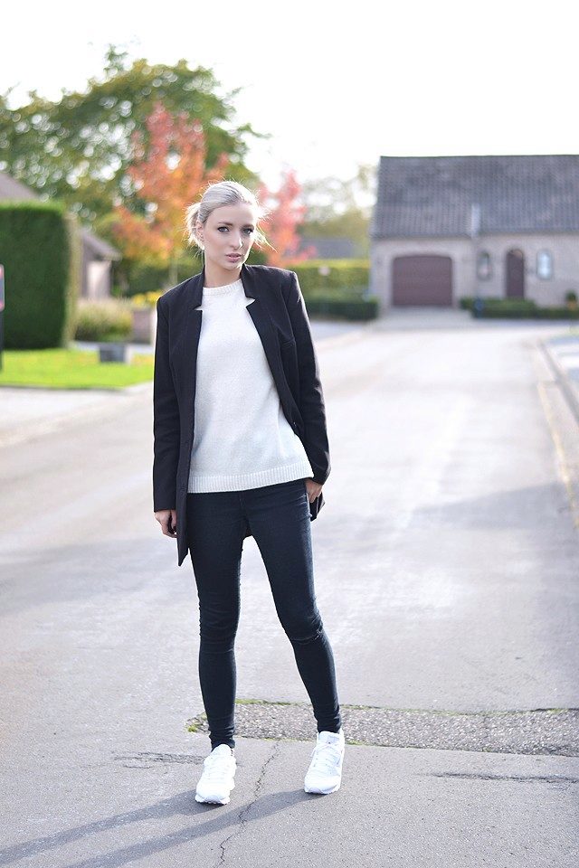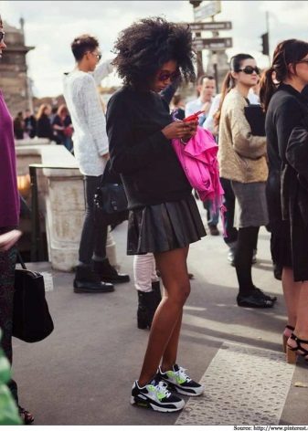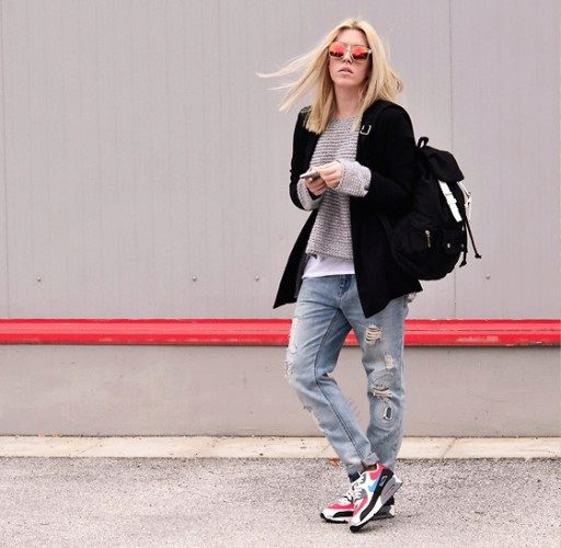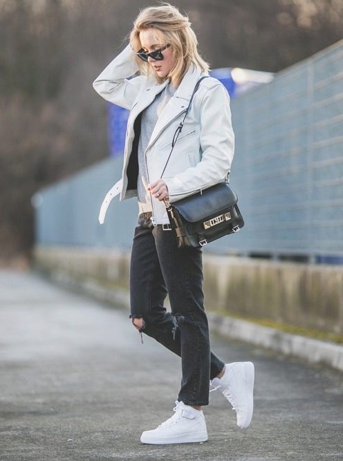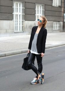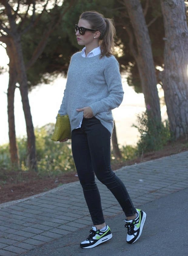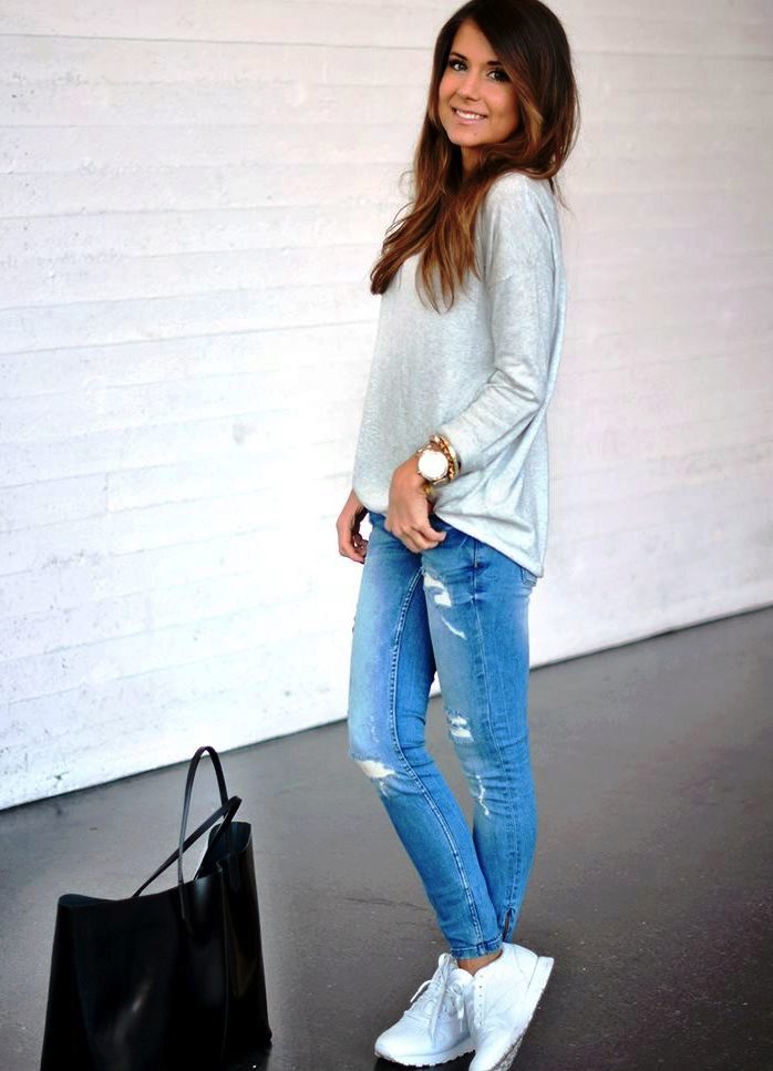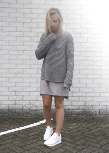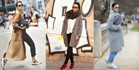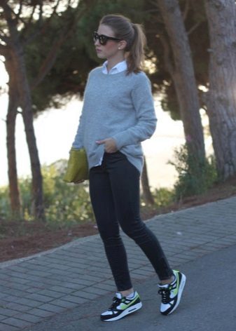 The nature and mood of the entire outfit depends on the color of the sneakers, because in some cases bright shoes are the decisive element that completes the image, and in other cases, calm shades refresh and complement the gray everyday outfit.
