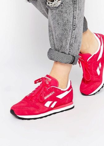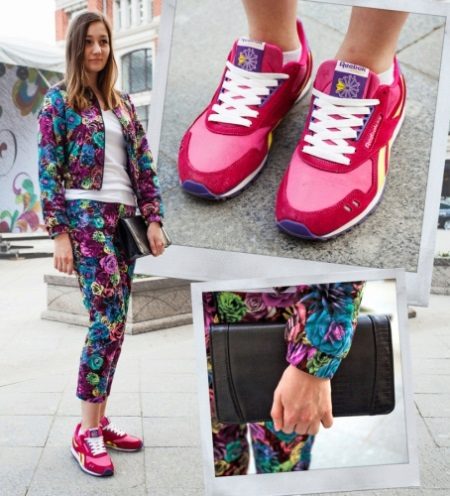 Pink color It looks the most beautiful in combination with the sports, mostly light, model of sneakers. Bright shoes are great for sports, with visual impact invigorates and energizes.