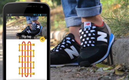 It looks very interesting lacing ladderSuitable for laces that are longer than average. They are intertwined in such a way that, visually, the laces look like a ladder with rungs.