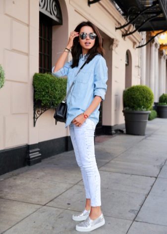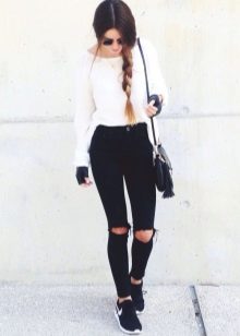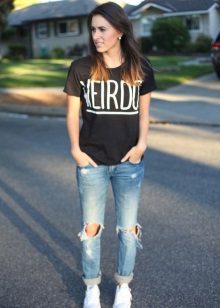 If the choice of sneakers decided, it is important to combine them with the "right" jeans. It can be skinny skinny, boyfriends, girlfriends, mom-jeans. In some images look good classic smooth models.