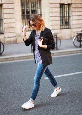 The combination of sneakers with jeans absolutely no surprise. If it is interesting to beat these two things from the basic wardrobe, you can get a very stylish and unusual image.