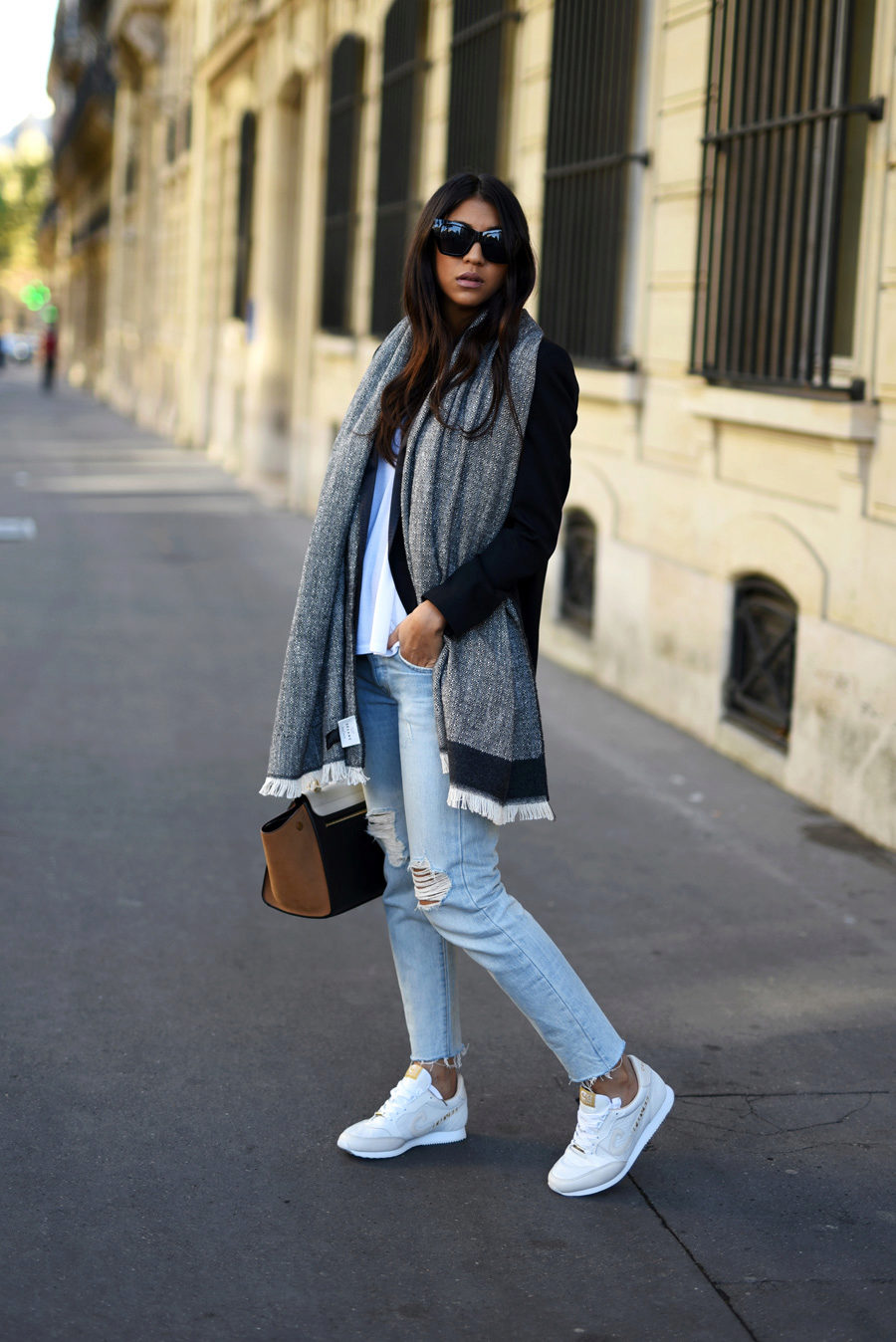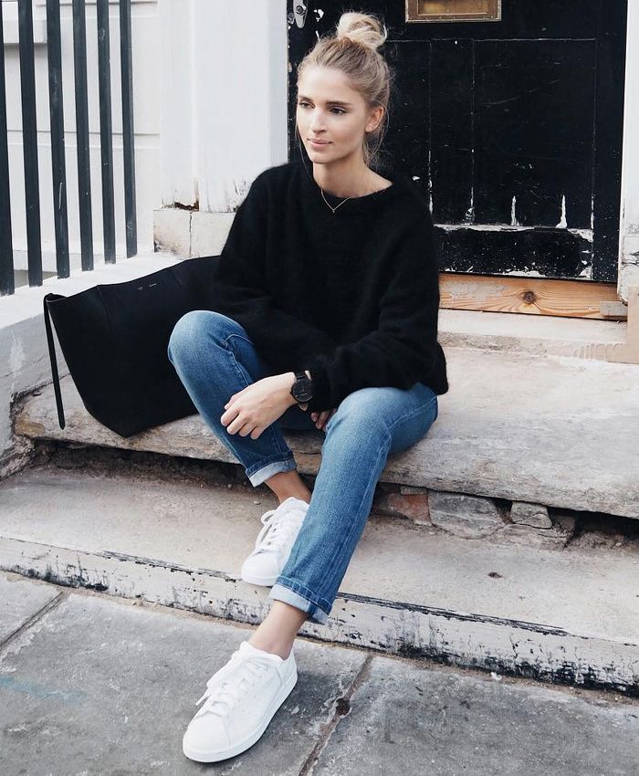 White sneakers for several years do not go out of fashion, they look very organic and stylish in combination with any jeans.