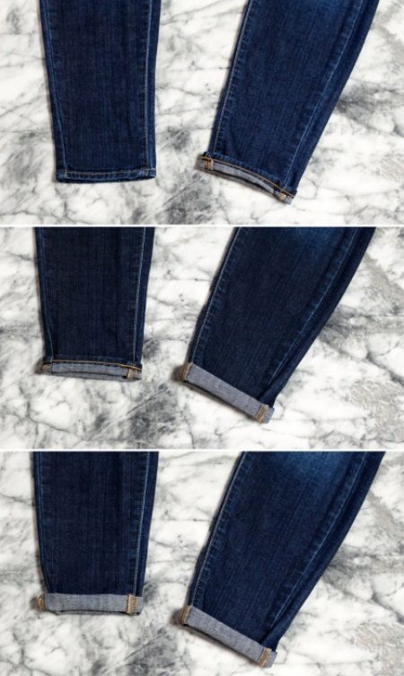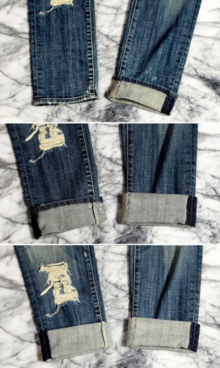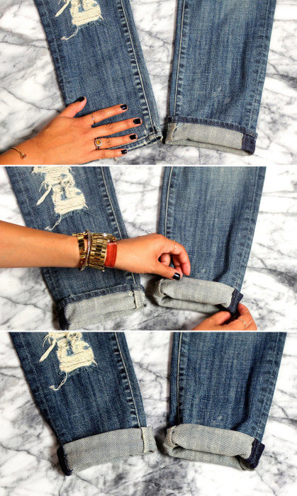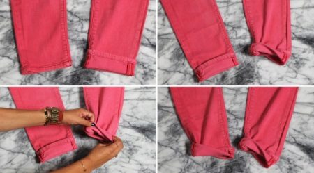 Small cuffs on narrow jeans help to visually lengthen the legs, and a strip of bare skin adds to the image of sexuality. Make a narrow cuff is very simple: you need to turn the bottom of the leg twice to 1-2 cm and carefully smooth the fabric with your fingers.