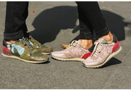 Choose not sports sneakers, and models in sports style or casual style. The exceptions are the sneakers of popular brands: Nike, New Balance Adidas.