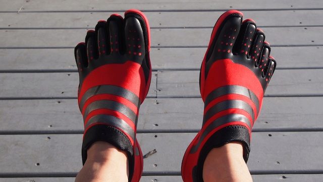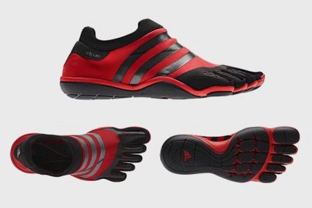 Adidas also developed his own five-finger sneaker model - Adipure trainer. They are extremely light and plastic, they are remarkably ventilated and perfectly fit the leg.