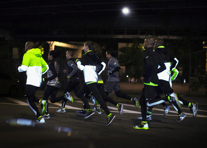 To run safely in the dark, this model of sneakers is equipped with reflective elements.