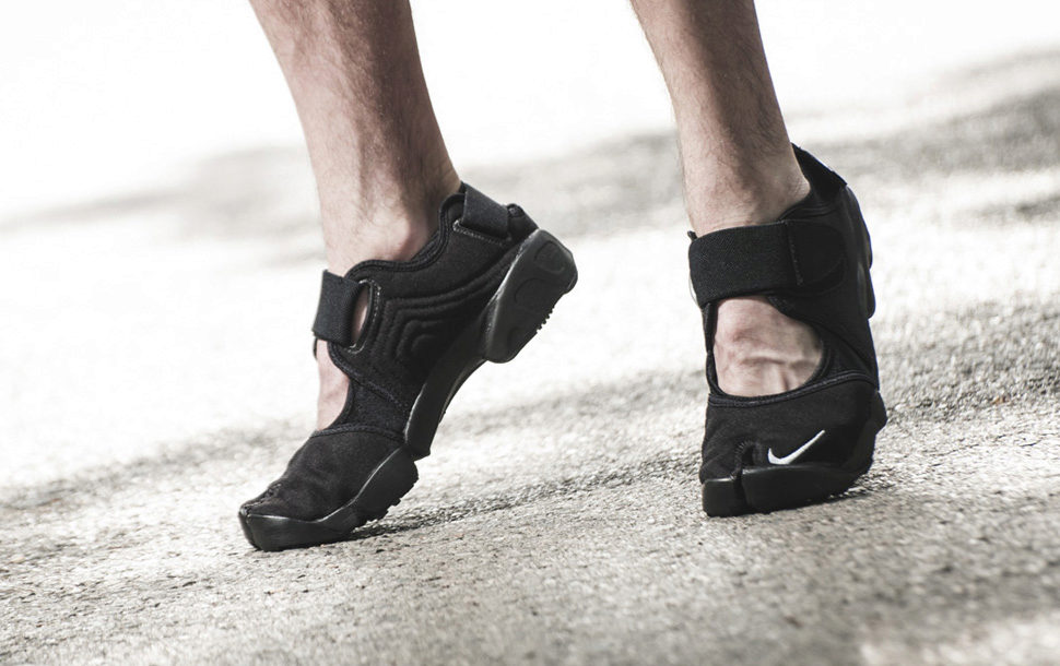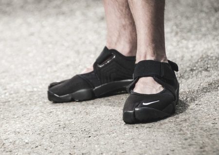One more interesting model - sneakers. Air rig from company Nike with forked nose part. In them, the thumb is separated from everyone else.