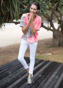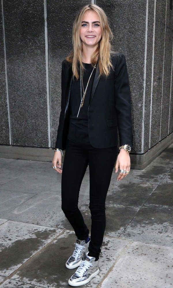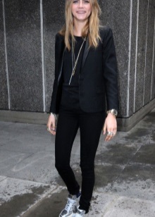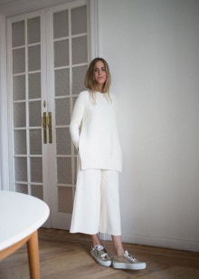 If you want to combine a trouser suit with sports shoes, choose a model with a slightly loose fit that will look more like a man's. You can also stay in a pajama suit made of silk or glossy cotton.